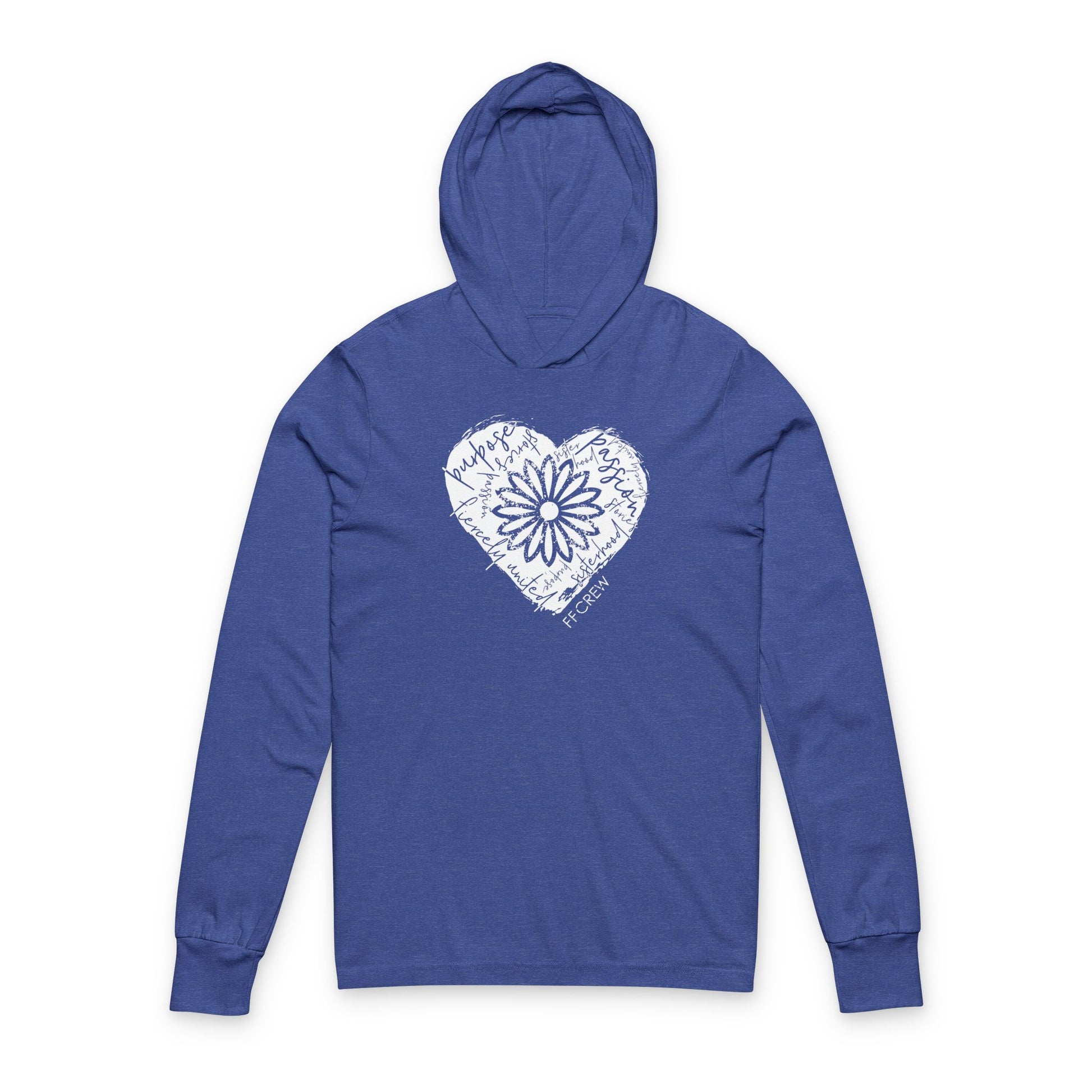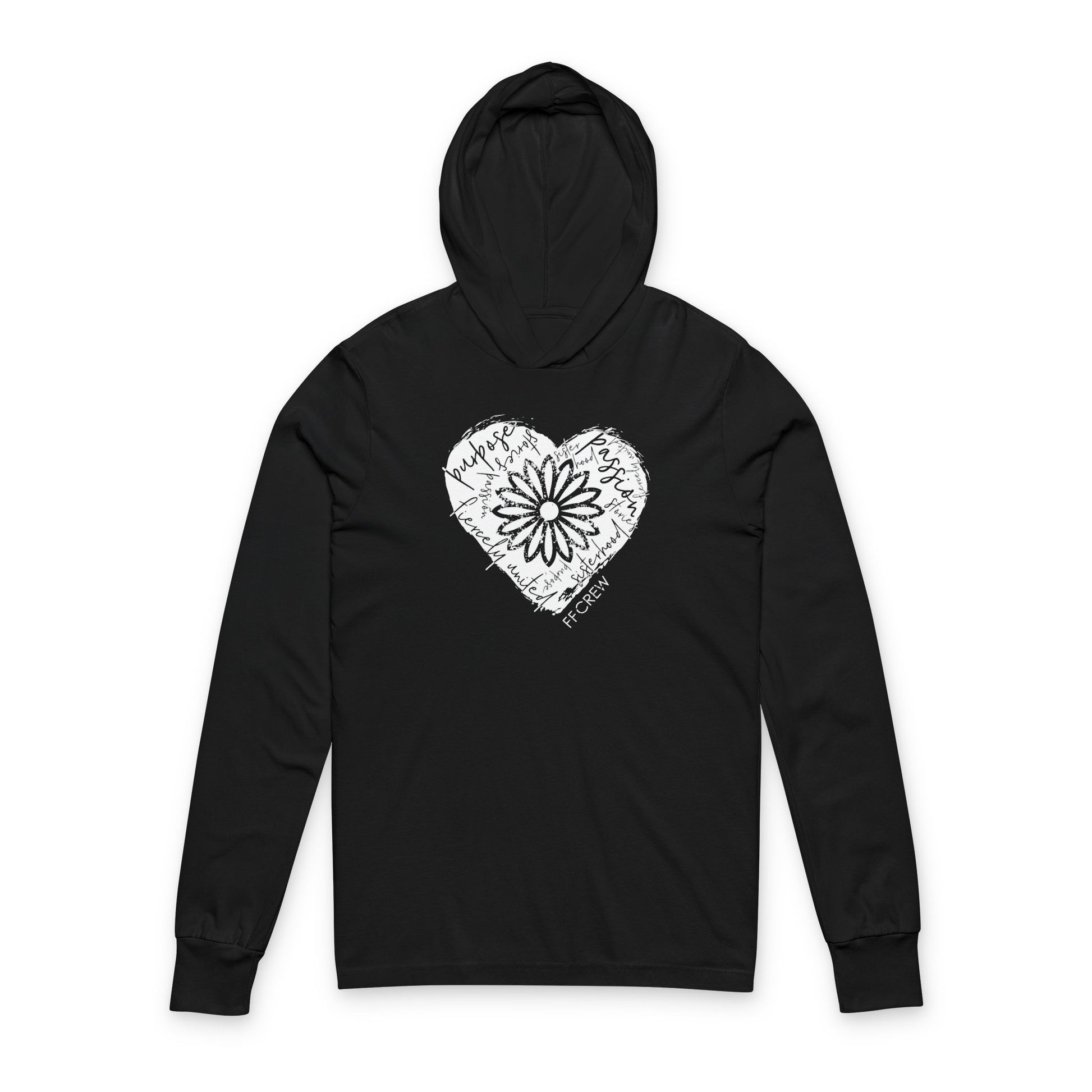 Show your love for the FFCrew with this classic design! Choose this lightweight Bella + Canvas longsleeve hoodie in either heathered blue or crisp black.
